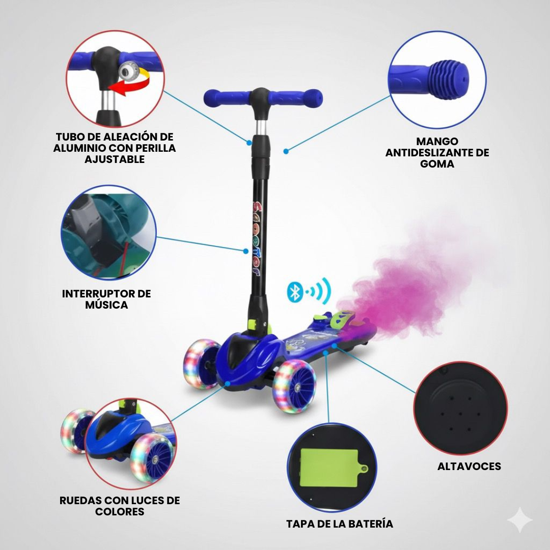 Patineta Scooter Mágica con Humo, Música y Luces